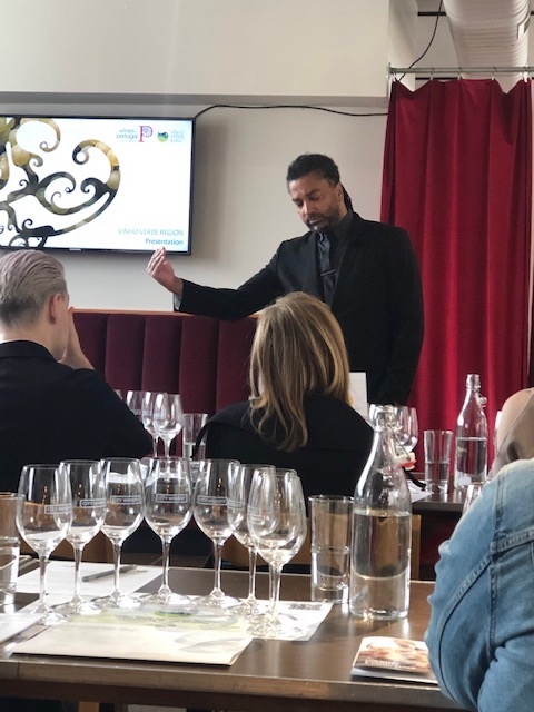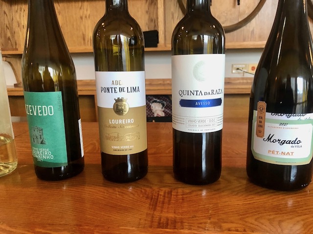 The region of Vinho Verde is located ‘entre Douro e Minho”. It is located just south of the Minho river in the north, which is the boundary with the Spanish wine region of Rias Baixas and by the Douro river in the south, known for its iconic fortified Port wines. The Atlantic ocean is the western border and then to the east are mountains which then leads into the hotter, Mediterrean climate of the interior. Like Rias Baixas many of Vinho Verde’s regions are named after rivers. The Vinho Verde DO produces sparkling, white, red and rose wines. There are 45 allowed grape varieties and 9 subregions: Amarante, Ave, Baiāo, Basto, Cávado, Lima, Monçāo & Melgaço, Paiva, and Sousa. Already, the scene is set for grape and wine diversity. We tasted through 8 wines white with Bruno, and reds and roses were opened for the walk around tasting after the seminar.