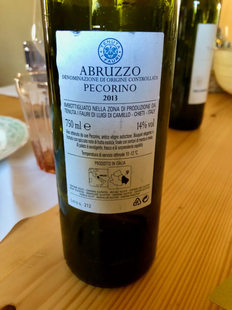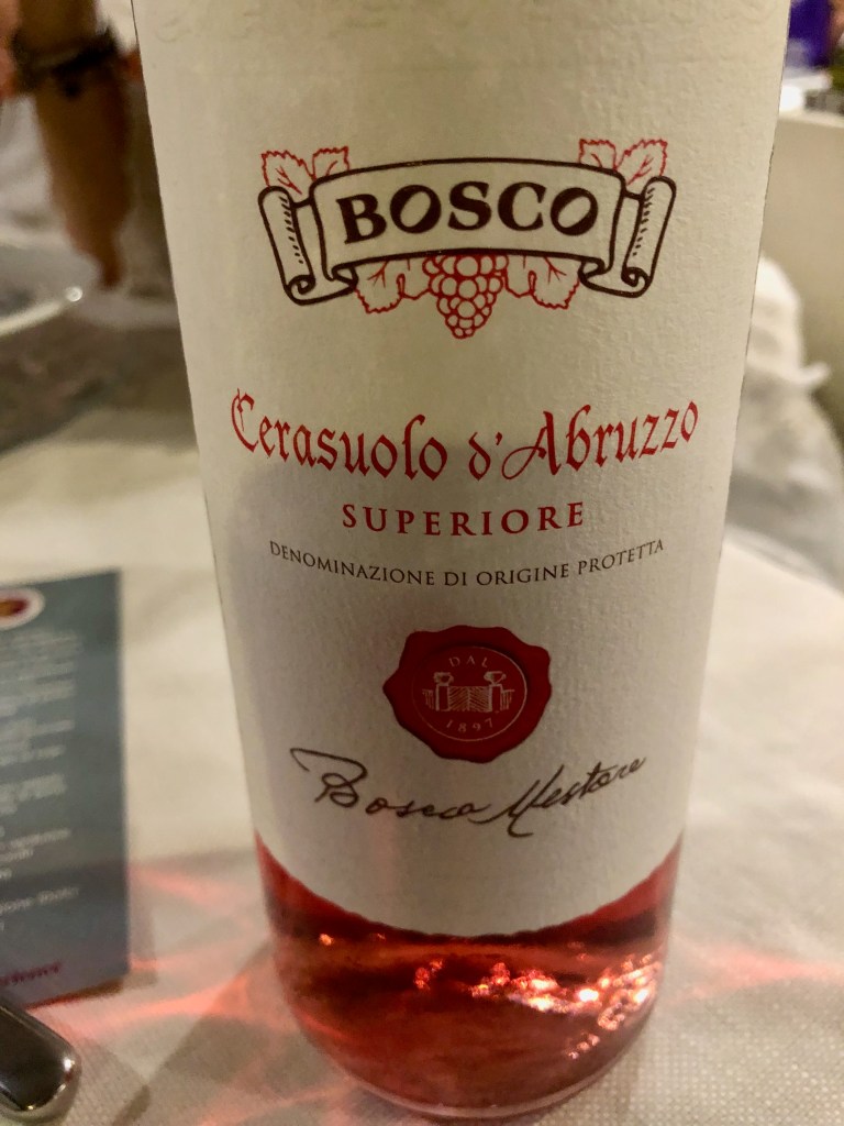 The official DOC for Cerasuolo d’Abruzzo has only existed since 2010, but the wine style is a traditional one for the region. The DOC requires 85% Montepulciano d’Abruzzo, the main red grape of Abruzzo and Italy’s 2nd most widely grown red grape. The grape develops anthocyanins quite readily, the compounds responsible for color in a grape, so the Cerasuolo wines are only macerated for 8-10 hours to develop the color and then pressed, although, the amount of time does vary based on producer. James Button, wrote a piece for Decanter 11/22/20, reviewing his favorite Cerasuolo’s d’Abruzzos including the one below by Nestore Bosco that was poured at dinner our first night in Abruzzo.