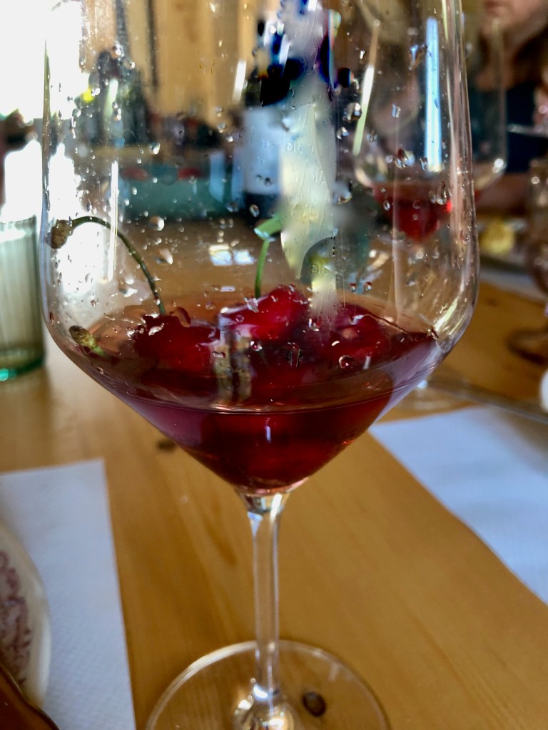 The color of Luigi’s Baldovino, Cerasuolo was a bright, vibrant cherry red that matched the cherries on the table. The name, Baldovino (herders who looked after sheep) was the nickname the local neighbors gave to his father so the family created a wine label, “Baldovino” in homage to his nickname.