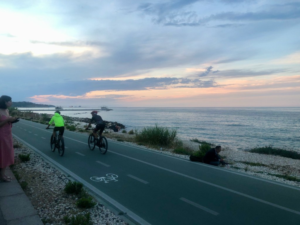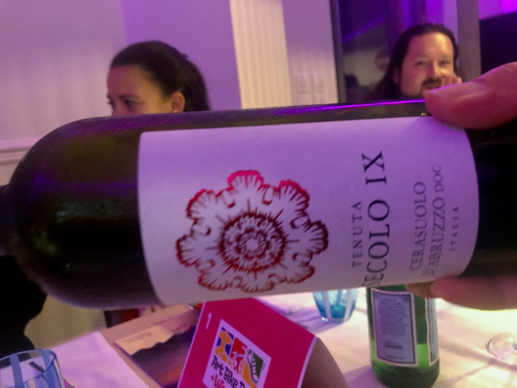 At each stop we made, Cerasuolo d’Abruzzo was poured. It even was the focus of a seaside party that our group attended, to kickoff the “Art, Bike & Run + Wine” project, taking place later this month in Chieti. For me this event is a glorious combination of activitiies, I love biking, I love art, I love running (well, for me now walking/jogging) and of course I love wine. From what I gather, it is an organization that supports the bike path along the coast, currently there are 42km accessible and the plan is to more than double the path to 130km.