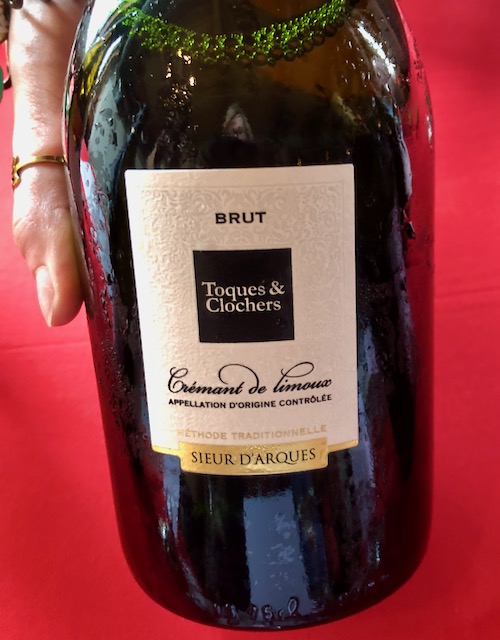 The Atlantic corridor has a cool, moist climate, shaped by two winds, the crisp, dry Atlantic wind from the west and the warm, Mediterranean wind from the east. Atlantic and Mediterranean grapes thrive in this southwestern corner of the region. The soil is rocky, limestone and sandstone and wines are a variety of reds, whites, and bright sparkling wines. The Limoux AOPS , Blanquette de Limoux, Blanquette de Limoux Methode Ancestral, and Cremant de Limoux , all sparkling and centered around the town of Limoux. The Cremant de Limoux, under the Toques & Clochers label of the Sieur d’Arques Cooperative in Limoux, were particularly delicious. The Toques & Clochers label represents the top cuvées produced by the cooperative. This cremant is a blend of 50% Chardonnay, 30% Chenin Blanc, 25% Pinot Noir, 5% Mauzac. The wine had lovely aromas of white flowers, lemon and a bit of hazelnut from 9 months on the lees.